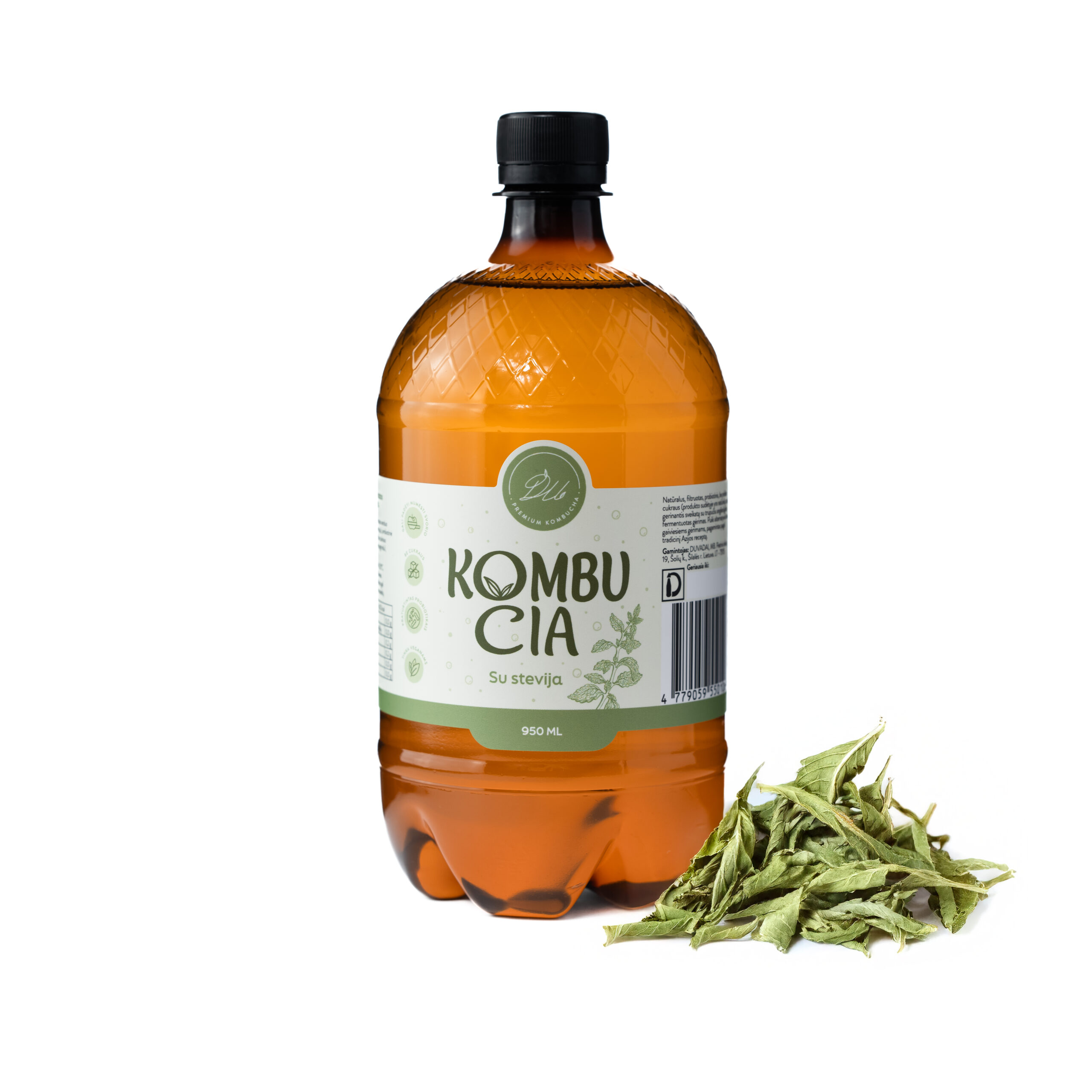 Filtruotas vanduo (atvirkštinės osmosės principu), simbiotinė bakterijų ir mielių kultūra, žalioji arbata, stevija, citrinžolė, pankolis, angliarūgštė.